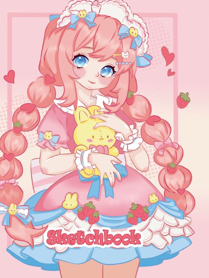 Скетчбук А5 80л склейка тв.обл. Аниме девочка с зайкой резинка 100г/м2 ПРОФ-ПРЕСС СБ80-6292