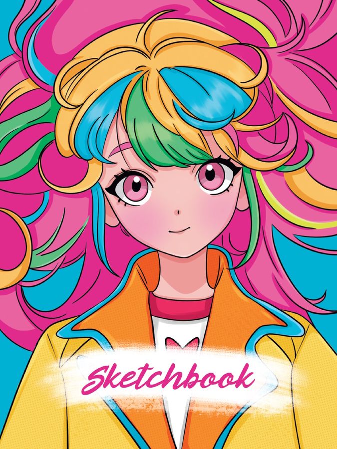 Скетчбук А5 80л склейка тв.обл. Девочка с цветными волосами резинка 100г/м2 ПРОФ-ПРЕСС СБ80-6293