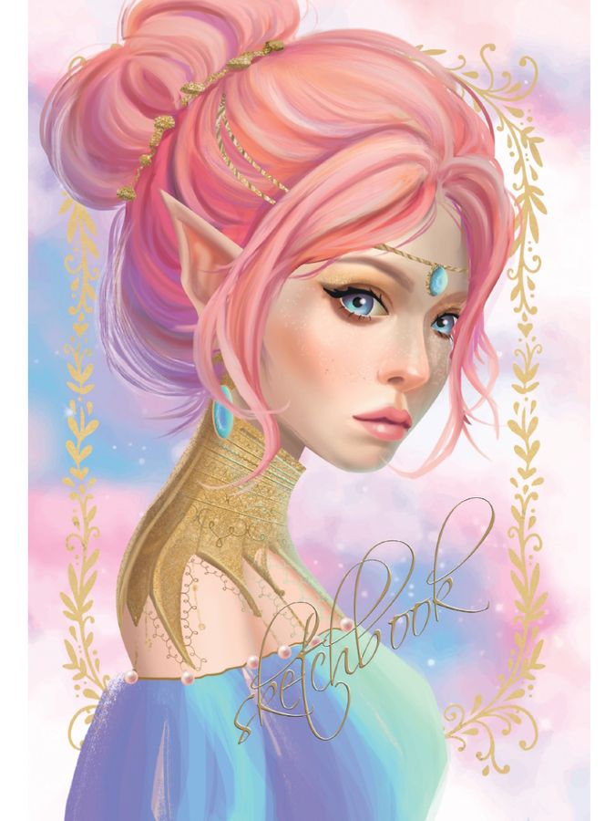 Скетчбук А5 80л склейка тв.обл. Девушка эльф резинка 100г/м2 ПРОФ-ПРЕСС СБ80-6181