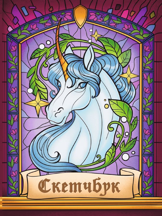 Скетчбук А5 80л склейка тв.обл. Витраж единорог резинка 100г/м2 ПРОФ-ПРЕСС СБ80-6718