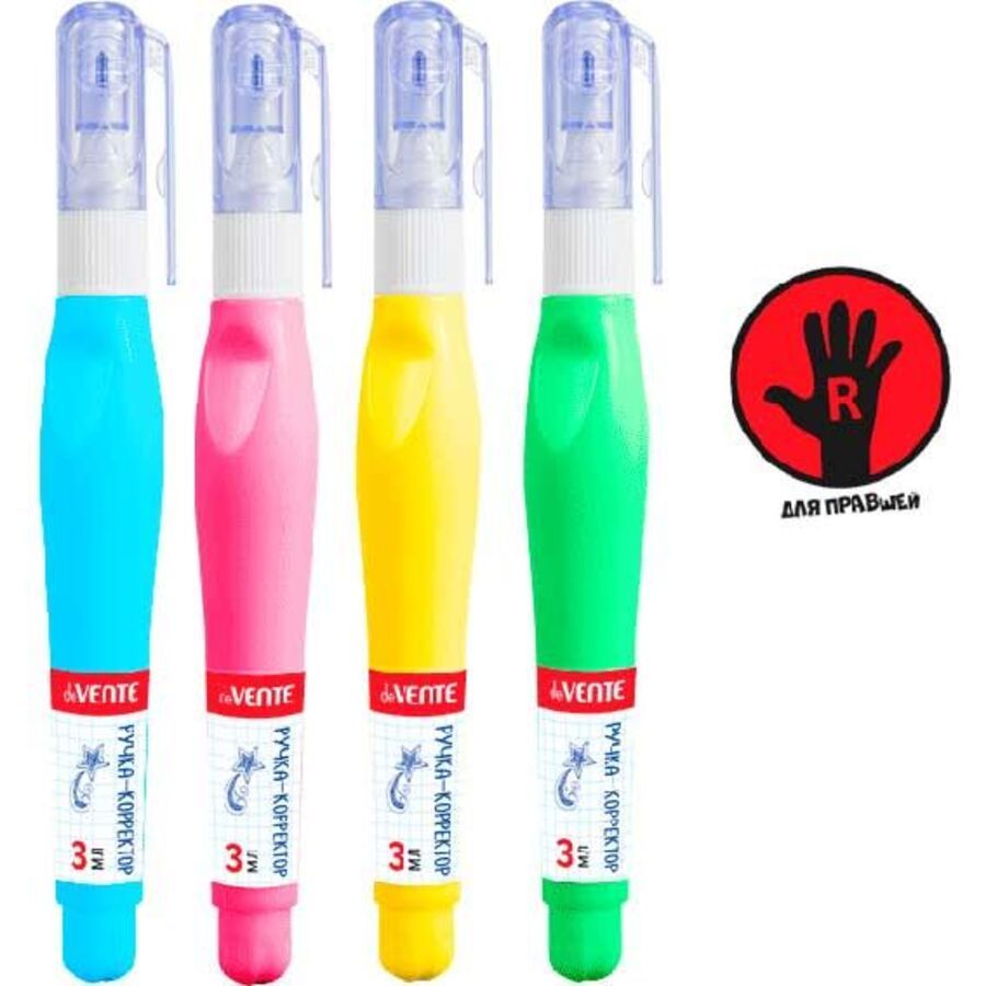 Ручка-корректор "deVENTE. School" 03 мл, для правшей, с эргономичным корпусом, быстросохнущая, укрывистая, для школьных тетрадей, трубчатая система подачи, цвета корпуса ассорти, в картонном дисплее