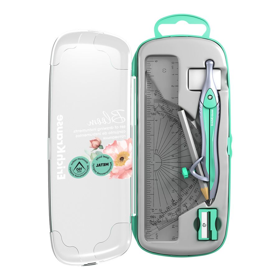 Набор чертежный 7пр. Pastel Bloom пласт.пенал зеленый ERICH KRAUSE 61440