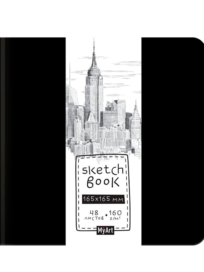 Скетчбук 170х170мм 48л склейка тв.обл. MyArt Мегаполис 160г/м2 ПРОФ-ПРЕСС СБ-48-3811
