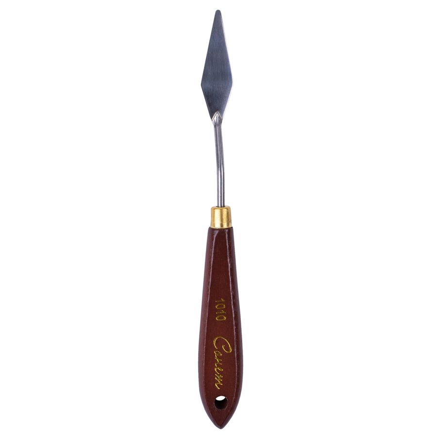 Мастихины производства «Сонет», г.Санкт-Петербург — это отличные, качественные и доступные инструменты для живописи, применяемые как профессионалами, так и любителями творчества. Представляют собой тонкую стальную пластину разной формы с удобной деревянной ручкой, покрытой лаком. Используется для нанесения красок широким ровным слоем или рельефным мазком. Также можно применить для удаления краски с холста, для нанесения грунта, чистки палитры. В ассортименте представлены стальные мастихины СОНЕТ разных видов и размеров на любой вкус. Название «мастихин» происходит от итальянского «mestichino». Мастихин — это специальный нож или мастерок, использующийся чаще в масляной живописи, позволяющий расширить техники применения густых пастозных красок, а также добавок для создания эффектов и рельефов поверхности, паст и гелей для красок. Работы, созданные с использованием мастихина, будут отличаться большим объемом, фактурностью и глубиной, чем написанные кистью. Размеры: ручка: 112х22 мм, нож: 56х10 мм