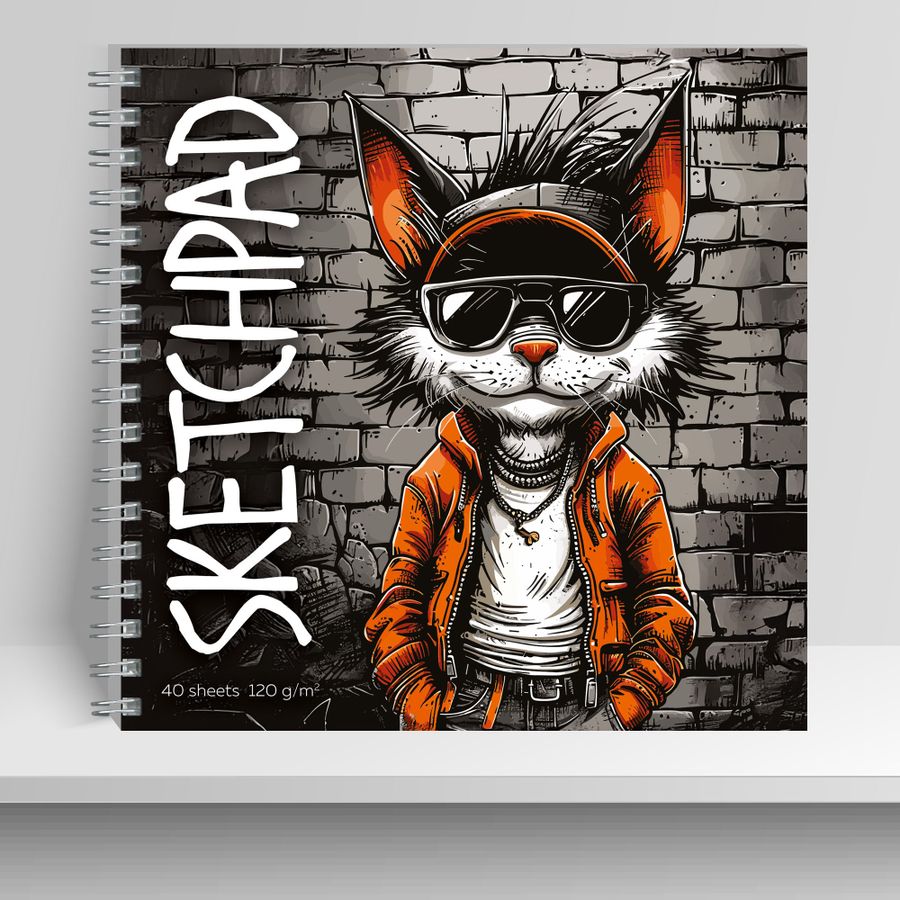 Скетчбук 195х195мм 40л гребень тв.обл. Крутой котэ soft touch 120г/м2 Seventeen 15128