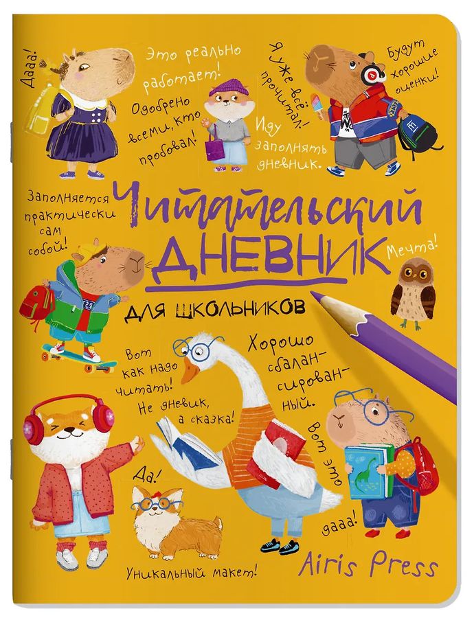 "Капибары" - читательские дневники, которые хочется заполнять! С ними чтение превращается в сплошное удовольствие! Читательский дневник придуман для учеников начальной и средней школы, но он подойдёт для всех любителей капибар и чтения. Он соответствует школьным требованиям, удобно разлинован и рассчитан на 27 книг. Дневник напечатан на плотной бумаге, поэтому не стоит беспокоиться, что надписи ручкой проступят на другой стороне листа. Заполнение дневника поможет детям узнать, что каждая книга - это увлекательное путешествие, которое можно совершить, не выходя из дома. В "Капибарах" ребёнок запишет название и автора книги, определит жанр и вспомнит сюжет. Перечислит главных героев и объяснит, почему кто-то из них ему особенно понравился. Выскажет общее впечатление о книге, поставит ей оценку-звёздочку и нарисует иллюстрацию или картинку-настроение - в "Капибарах" на каждом развороте есть место для рисунка. Для любителей литературных гаданий найдутся свои странички. Надо взять любимую книгу, задать вопрос, открыть её наугад и выбрать случайную строчку. А ответ потом записать её на память в дневнике. Если все книги из школьного списка будут прочитаны, в конце дневника есть ещё один, с любовью составленный редакторами "Айрис-пресс". "Капибары" не просто летний читательский дневник - его можно вести весь год. Дневник подойдёт и девочкам и мальчикам, станет хорошим дополнением к учебникам и рабочим тетрадям по чтению и литературе. Поможет в формировании навыков работы с текстами, в развитии культуры чтения, улучшении письменной речи, и в умении писать сочинения. В создании дневников принимает участие целая команда - педагоги, психологи и методисты, чтобы данная тетрадь для внеклассного чтения увлекла ребёнка, и он с радостью заполнял её сам.