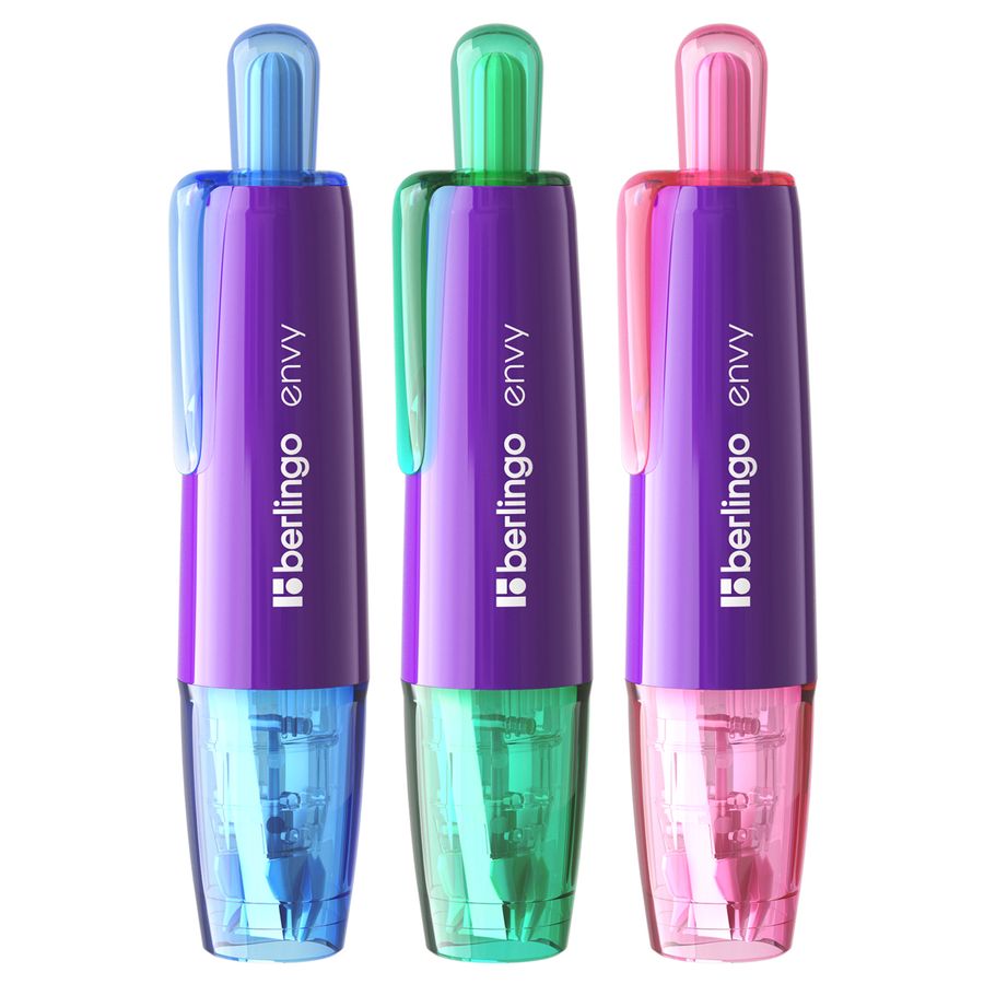 Корректирующая лента Berlingo Envy подходит для машинописного или рукописного текста. Лента длиной 6 метров и шириной 5 мм точно и плотно покрывает строку. В данной модели используется конструкция прямой подачи ленты, которая является более надежной, предотвращает сползание ленты с наконечника и ее перекручивание во время использования. Имеет подвижный наконечник, благодаря которому лента может использоваться под любым углом. Стабилизатор позволяет добиться ровной линии. Автоматическая конструкция позволяет убирать наконечник, тем самым защищая его. Корпус выполнен в трех цветах ассорти. Упаковка -– картонный дисплей-бокс. Каждая лента покрыта защитной пленкой для безопасной транспортировки. Является частью одноименной кросс-серии продукции бренда Berlingo. • Ширина: 5 мм; • Длина: 6 м.