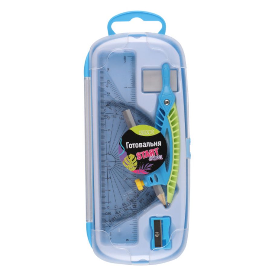 Готовальня 7пр StartSchool 231381 КОКОС пластиковый футляр европодвес голубой