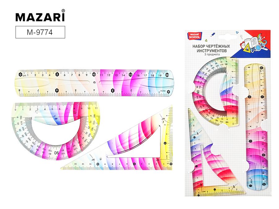 Набор геом. 3пр. средний гибкий (линейка 20см, угольник, транспортир) MAZARI M-9774