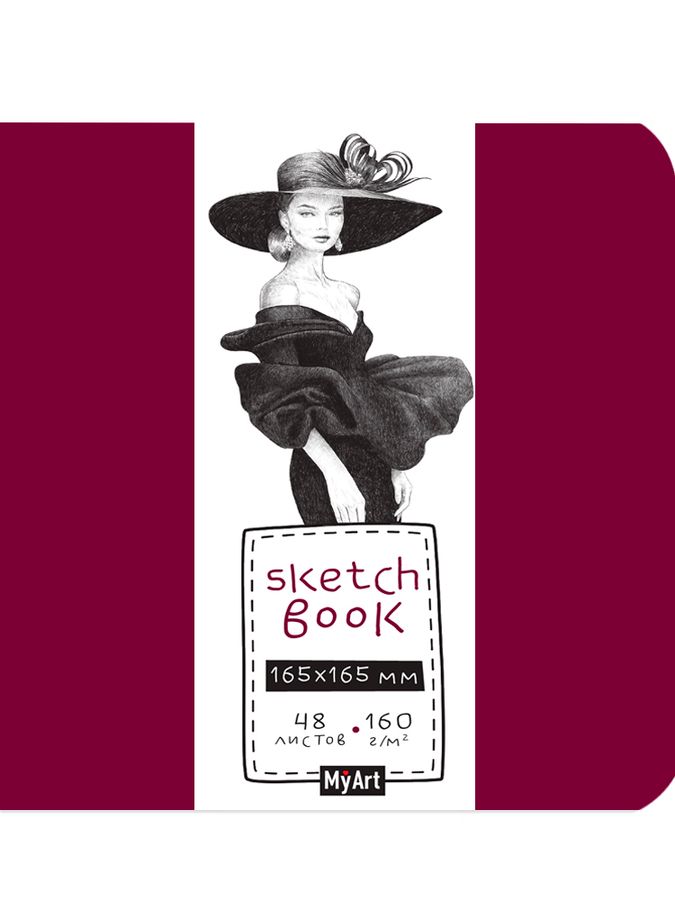 Скетчбук 170х170мм 48л склейка тв.обл. MyArt Дама в шляпе 160г/м2 ПРОФ-ПРЕСС СБ48-7132