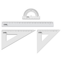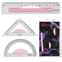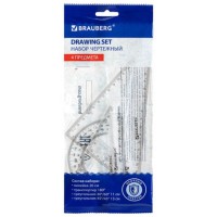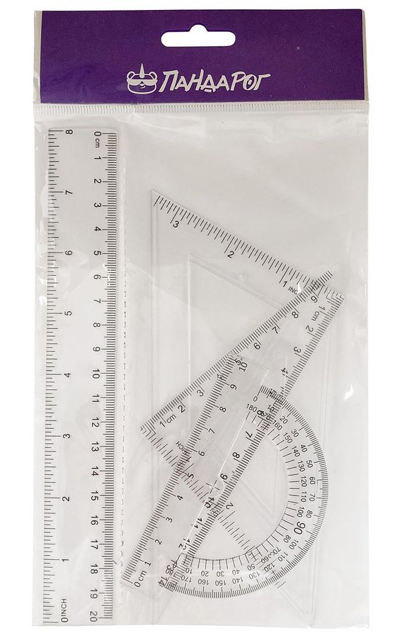 Набор чертежный ПандаРог включает в себя чертежные принадлежности из прозрачного пластика. Набор поставляется в прозрачном пакете с европодвесом. Линейка 20 см расположена в отдельном узком отсеке, имеет шкалу в сантиметрах и дюймах. В широком отсеке треугольники 14 см 60°/30° и 9 см 45°/45° со шкалой в сантиметрах и дюймах, а также транспортир 10 см. Набор предназначен для чертежно-измерительных работ в учебных заведениях и научно-исследовательских институтах.
