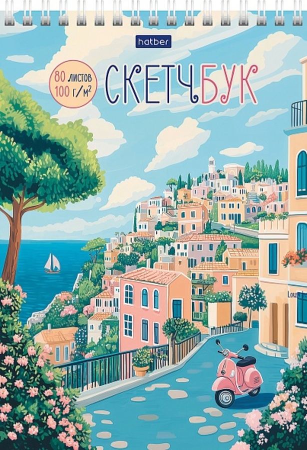 Скетчбук А5 80л гребень мягк.обл. Летняя прогулка жест.подложка 100г/м2 HATBER 80Б5Aгр_34924