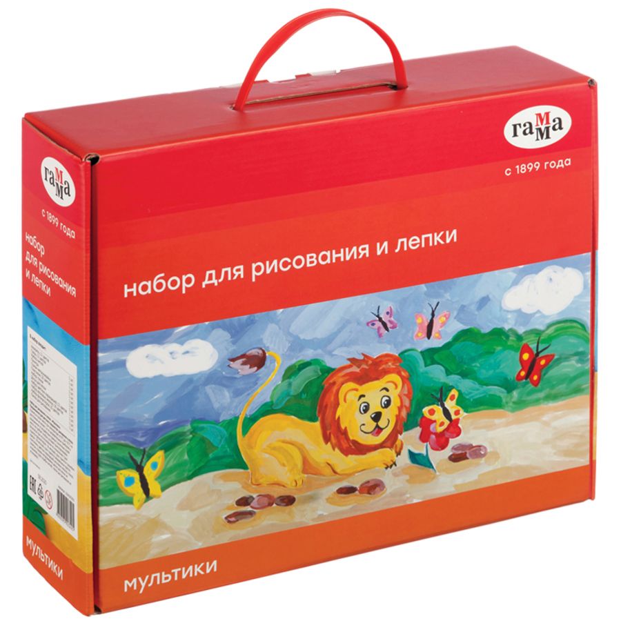 • Набор принадлежностей для творчества ГАММА «Набор для рисования и лепки «Мультики» – разработан для детей от 6 до 9 лет. Набор разнообразит творческий процесс любого ребенка - можно воспользоваться карандашами и фломастерами, цветными мелками, красками или пластилином. Набор состоит из 12 предметов, размер коробки – 25*8,8*31,5 см. В состав набора вошли: акварель 12 цветов, пластилин 18 цветов, гуашь 12 цветов, цветные карандаши 6 цветов, фломастеры 6 цветов, восковые мелки 12 цветов, кисти пони №2, 4, 7, набор стеков, стакан-непроливайка, палитра, папка для рисования, доска для лепки. Набор в яркой коробке с ручкой и новым фирменным дизайном самой узнаваемой серии ГАММА «Мультики» станет идеальным подарком.