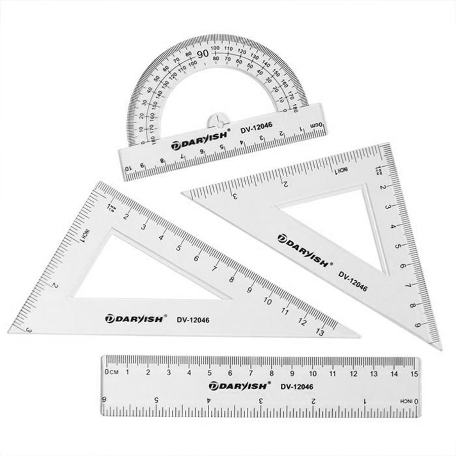 Набор геометр. "Darvish" 4 предмета (линейка 15 см+ транспортир+ 2 треугольника)