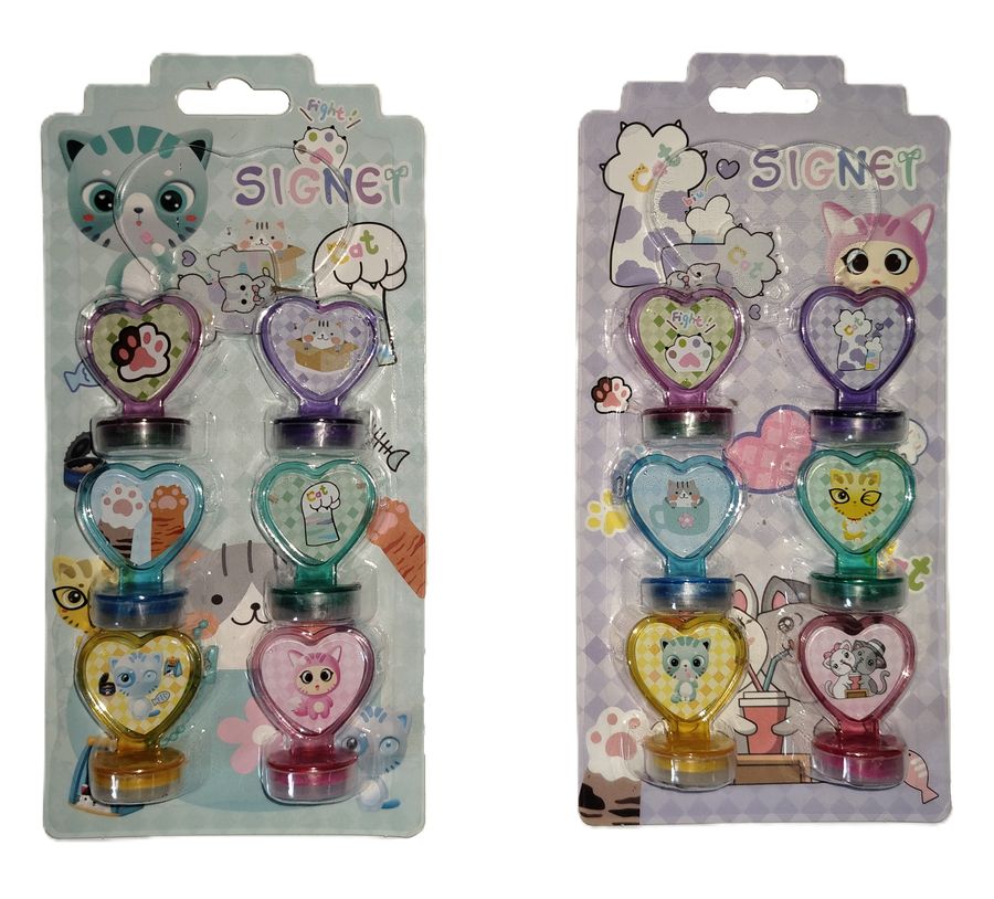 Штампик детский с картинками КОТИКИ, размер 3х4 см, набор 6 шт, картинка штампа совпадает с картинкой на держателе, блистерная упаковка