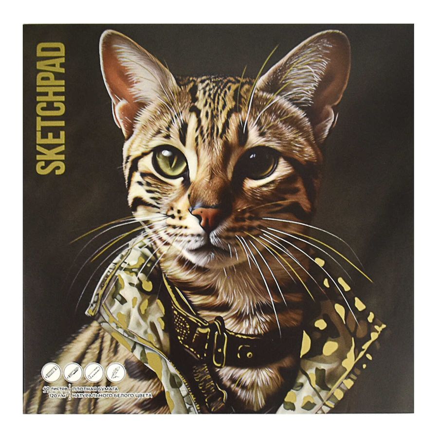 Альбом для рисования (Скетчпад) 40 л, арт. 68264 СТИЛЬНЫЙ КОТ (170х170 мм), блок - белый офсет 120 г/м², обложка - полноцветная печать, пятая краска, клеевое скрепление с откидной крышкой/