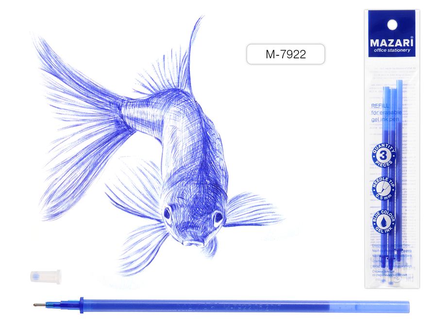 Стержень гелевый Набор 3шт синий 122мм 0,5мм стираемый MAZARI M-7922