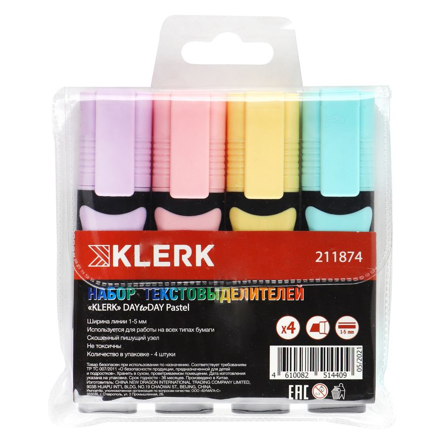 Текстовыделители набор 4цв 1-5мм пастельные day to day KLERK 211874