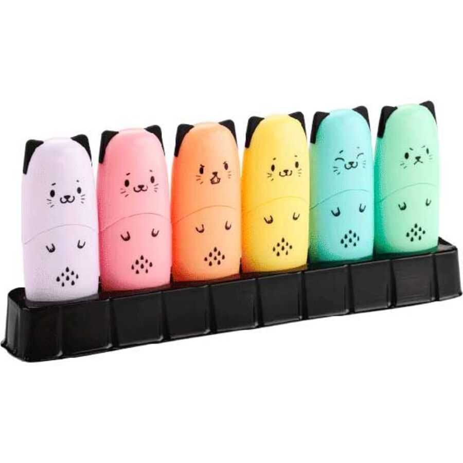 Набор маркеров-выделителей "deVENTE. Kitty" (06 цв - пастельные цвета: роз, желт, зелен, фиол, оранж, гол) плоский мини-корпус, скошенный наконечник, ширина линии 1-5 мм, на специальном поддоне в пластиковой упаковке.