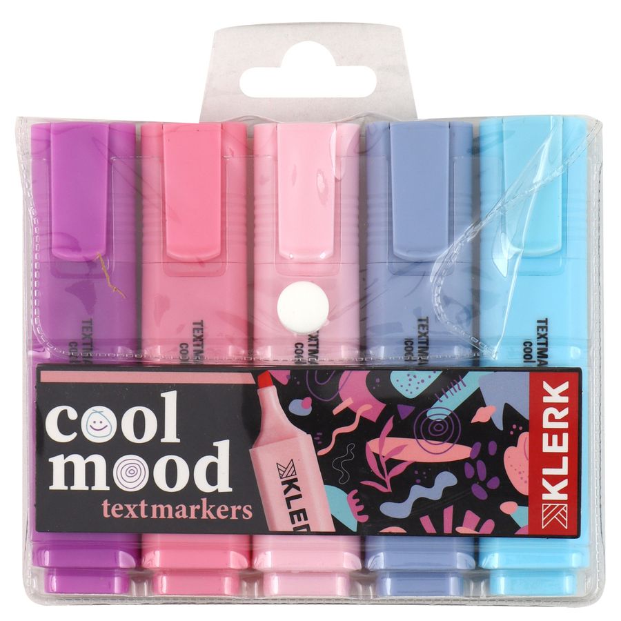 Набор текстовыделителей, 5 шт, 1-5 мм, скошенный, 5 цветов, COOL MOOD, KLERK, 231716