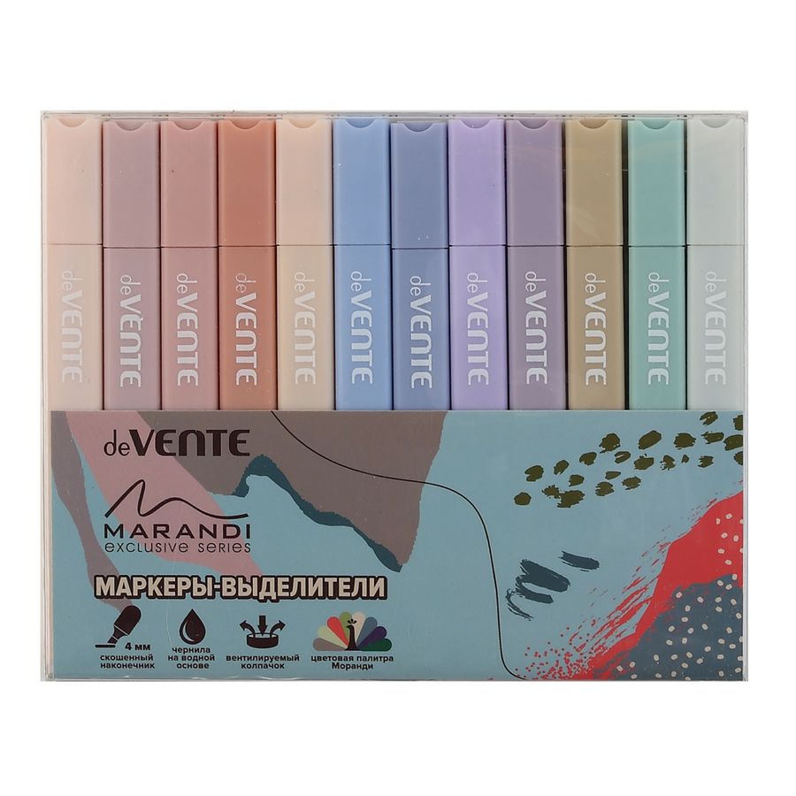 Набор маркеров-выделителей "deVENTE. Marandi" 12 цв, прямоугольный корпус, скошенный наконечник, ширина линии 1-4 мм, в пластиковом блистере