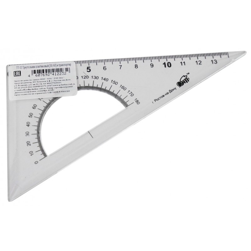 ТТ-15 Треугольник пластиковый с транспортиром 15см
