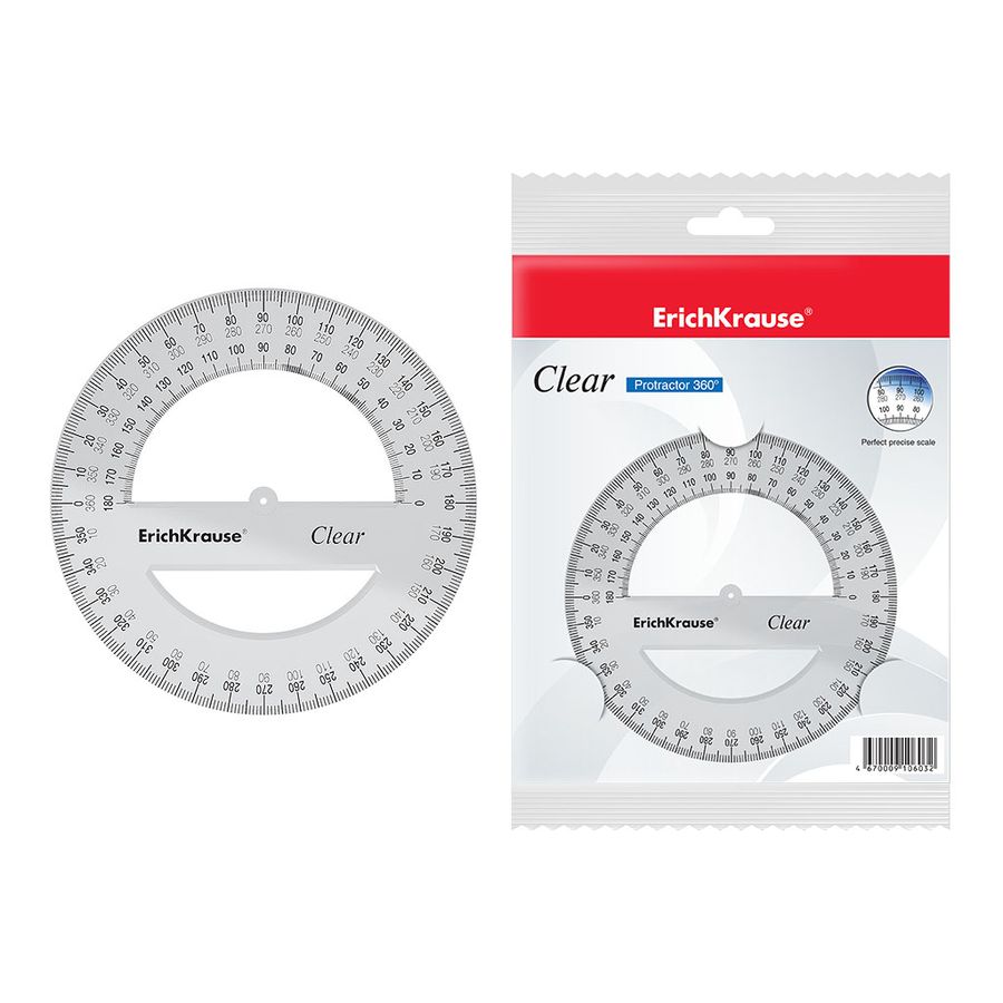 Транспортир 12см 360° Clear прозрачный ERICH KRAUSE 49555