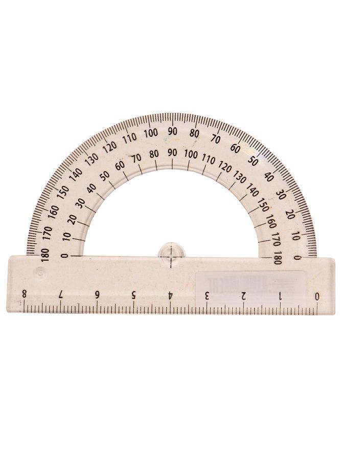Транспортир пригодится каждому школьнику как в школе, так и дома при выполнении домашних заданий. Будет полезен для освоения первых навыков черчения. Длина разметки основания транспортира: 8 см. Точная угловая шкала: 180°. Материал: пластик.