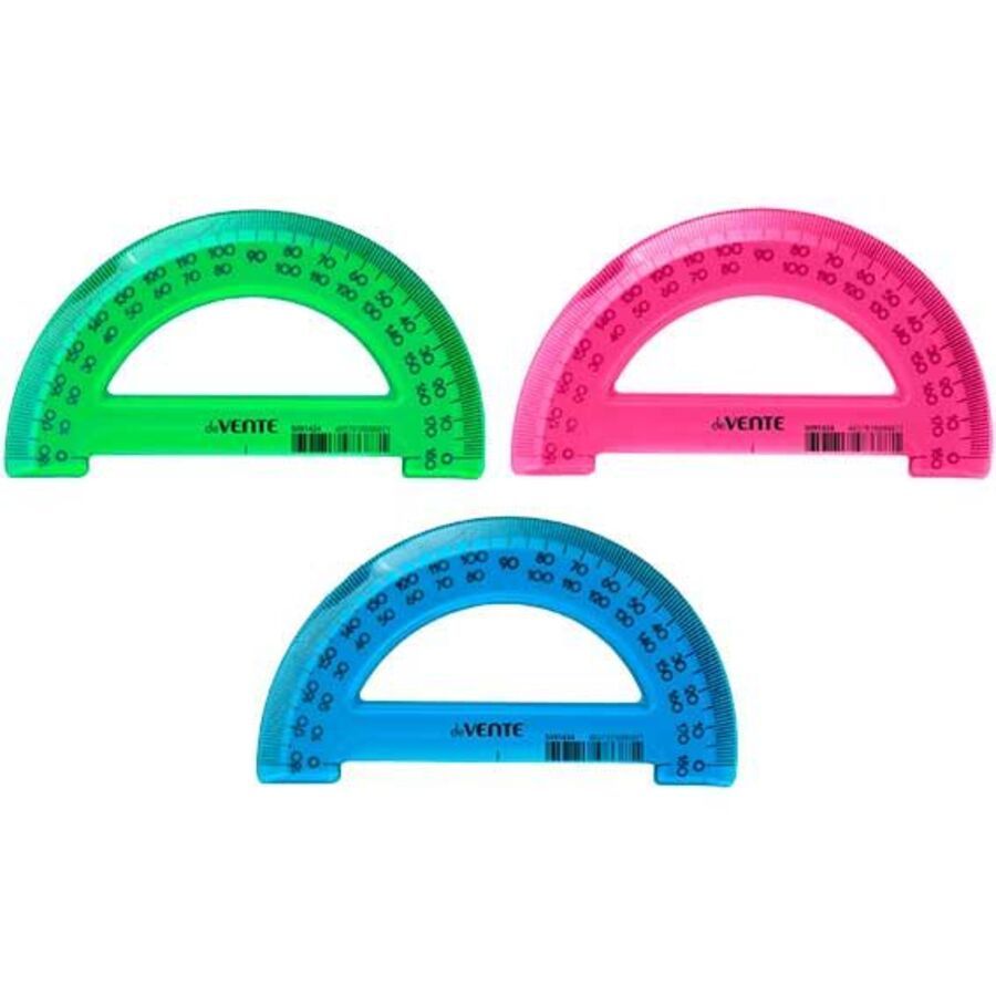 Транспортир "deVENTE" 180°/10 см, прозрачный пластик, черная односторонняя гадуировка, цвета ассорти, гадуировка односторонняя черная, индивидуальная маркировка