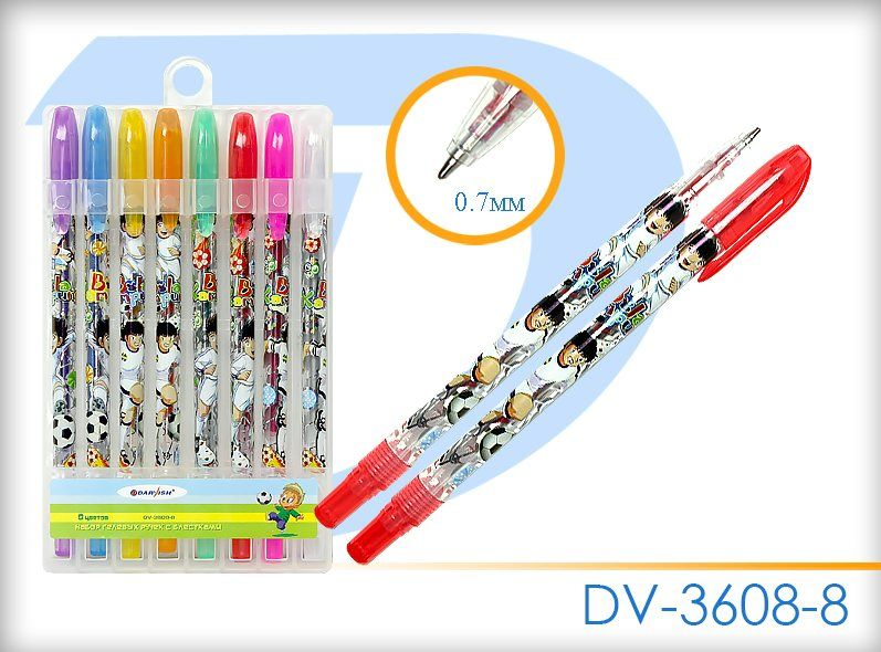 Ручка гелевая набор 10 цветов с блестками корп. с рисун. DV-1463-10 (универсальный)