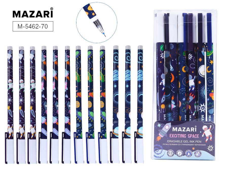 Ручка гелевая со стираемыми чернилами EXCITING SPACE, СИНЯЯ, игольчатый пиш. узел 0.5мм, термочувствительные чернила, корпус пластиковый цветной, сменный стержень 128 мм, ПВХ-упаковка