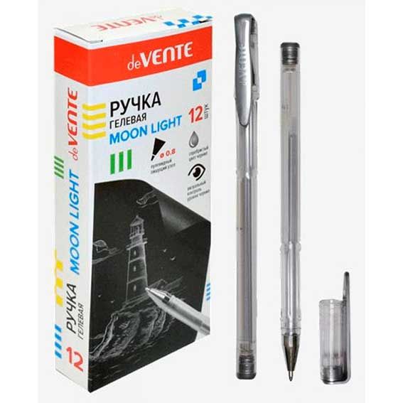 Ручка гелевая "deVENTE. Moonlight" d=0,8 мм, серебристые чернила с эффектом Highlighter, для рисования на черной бумаге, прозрачный корпус с металлическим наконечником, сменный стержень, индивидуальная маркировка