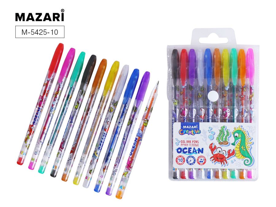 Набор ручек гелевых с блёстками OCEAN, с ароматизированными чернилами, 10 цв., пулевидный пиш.узел 0.9мм, корпус пластиковый цветной, в пвх-упаковке с европодвесом