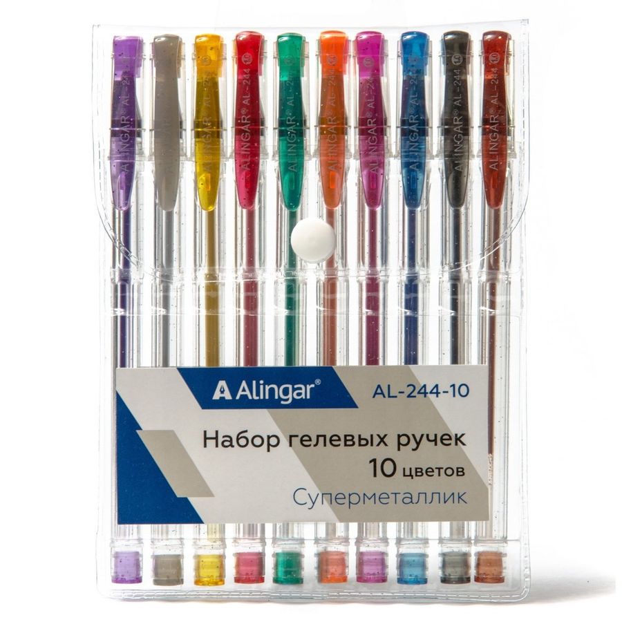 Ручка гелевая Набор 10цв 1,0мм Металлик круглый пласт.корпус ALINGAR AL244-10