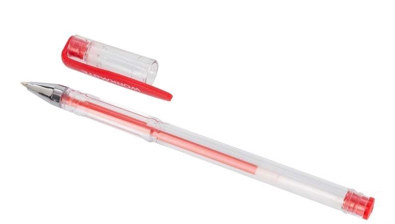 Гелевая ручка оснащена резиновой манжетой для предотвращения скольжения руки во время письма. Прозрачный пластиковый корпус, пластиковый колпачок с клипсой в цвет чернил. Толщина линии письма - 0,3 мм. Цвет чернил - красный. Легко пишут, чернила быстро высыхают.