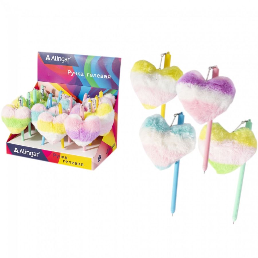 Ручка сувенирная гелевая синяя 0,4мм Плюшевое сердечко игольч.стерж. ALINGAR AL8397