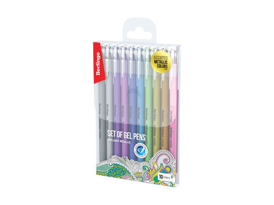 Ручка гелевая Набор 10цв 0,8мм Brilliant Metallic корпус ассорти BERLINGO CNg_40410