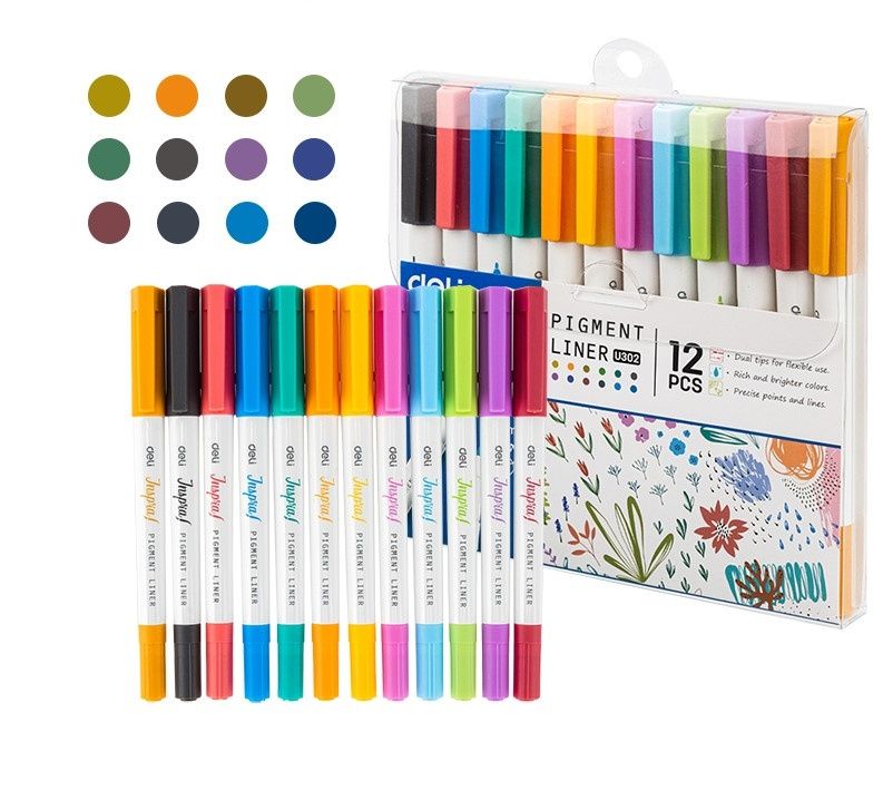 Набор линеров Deli EU302, двухсторонний наконечник 0.5 мм/1.0 мм, 12 цветов в наборе EU302