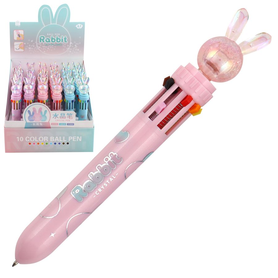 Ручка шариковая автоматическая 10-ти цветная 0,7мм Kuki Кролик ассорти 3 вида Кокос 241680/KK-7790