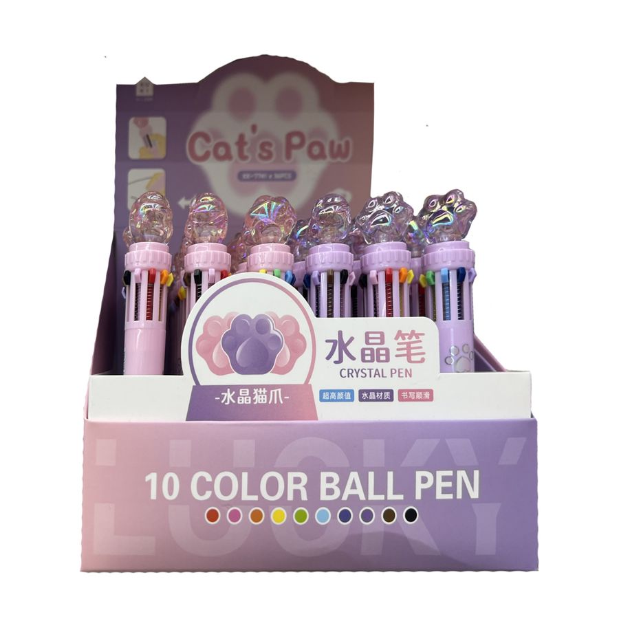 Ручка шариковая автоматическая 10-ти цветная 0,7мм Kuki Лапка ассорти 2 вида Кокос 241681