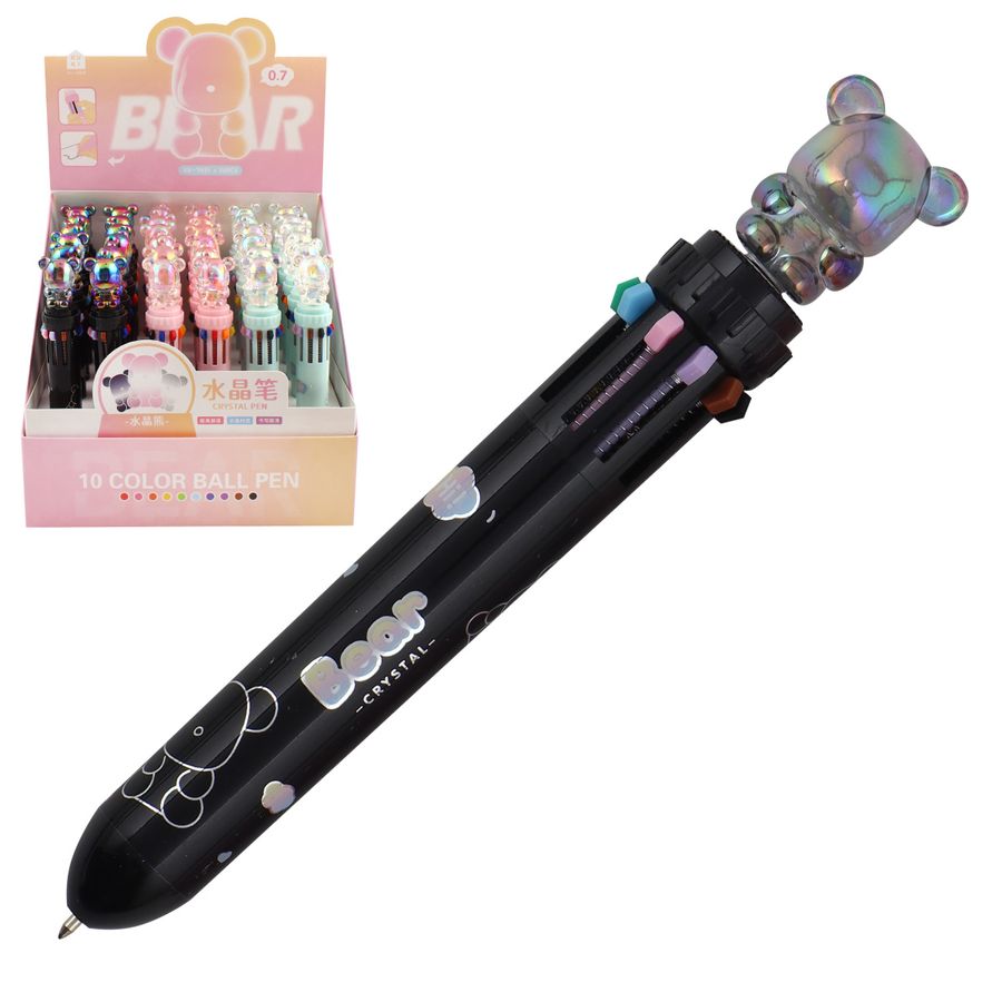 Ручка шариковая, автоматическая, цветной пластиковый корпус, 10 цветов, пишущий узел 0,7 мм Мишка КОКОС 241682 KUKI