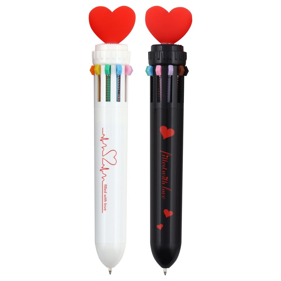 Ручка шариковая автоматическая 10-ти цветная 0,7мм Morn Shine Сердце ассорти 2 вида Кокос 241750
