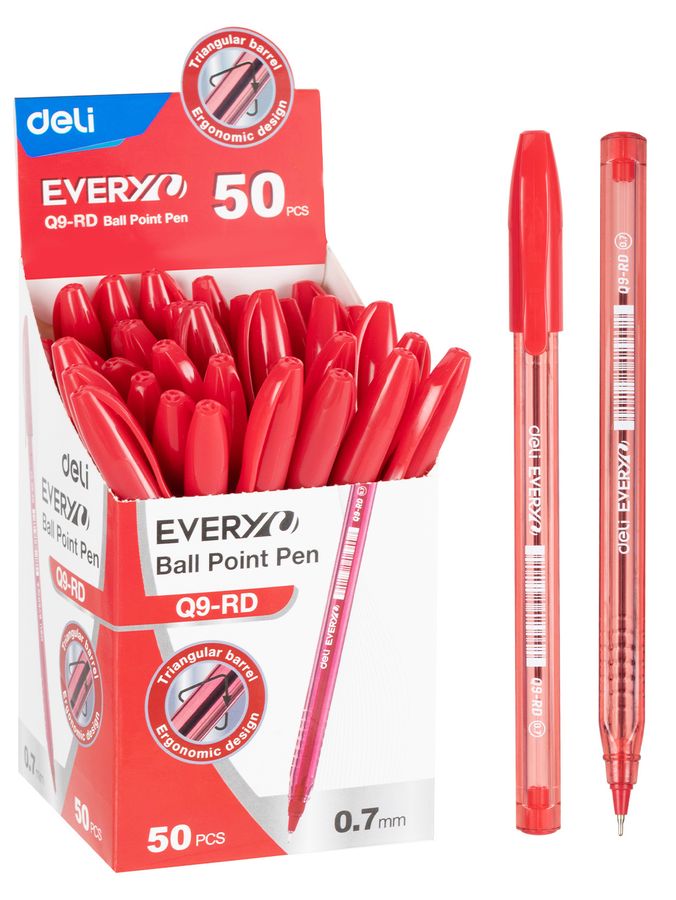 Ручка шариковая красная 0,7мм красный корп. DELI EQ9-RD