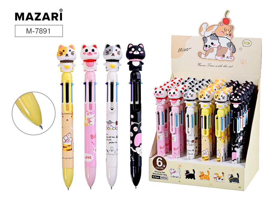 Ручка шариковая автоматическая 0.7мм 6цв. Cute cat MAZARI M-7891