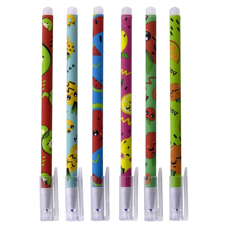 Ручка гелевая пиши-стирай Zoomi, "Фрукты", 0,5 мм, синяя, игольчатый наконечник, круглый цветной пластиковый корпус, ПВХ упаковка