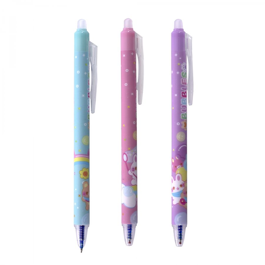 Ручка гелевая пиши-стирай, автоматическая Alingar "Зайчики", 0,5мм, синяя, игольчатый наконечник, круглый цветной пластиковый корпус, ПВХ упаковка