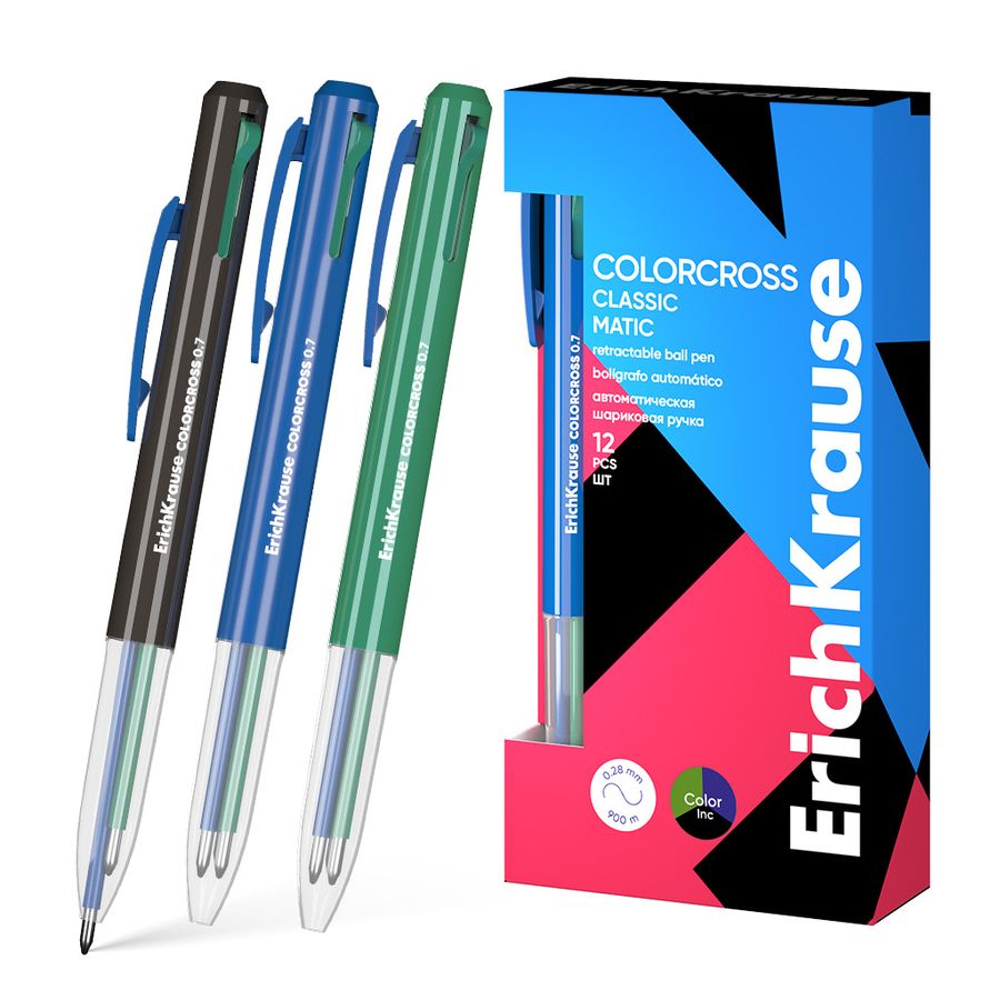 Автоматическая шариковая ручка Matic со стандартным типом пишущего узла. Ручка имеет 3 стержня разных цветов, на корпусе находится механизм для выбора необходимого цвета. У ручки непрозрачный корпус ярких цветов. 5-канальный пишущий узел с диаметром шарика 0.7 мм в сочетании с быстросохнущими чернилами обеспечивает мягкое и быстрое письмо. Длина непрерывной линии составляет 800 м при толщине 0.28 мм, что является высоким показателем в своей категории.