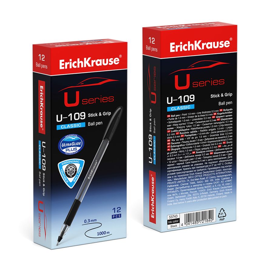 Ручка шариковая черная 1,0мм U-109 Stick&Grip Classic Ultra Glide Technology ERICH KRAUSE 53743