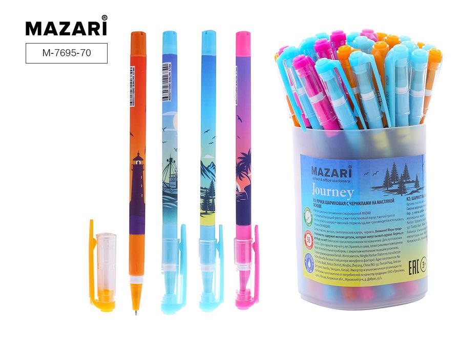 Ручка шариковая JUORNEY, СИНЯЯ, чернила на масляной основе, игольчатый пиш. узел 0.7 мм, цветной пластиковый корпус с резиновым грипом, 4 дизайна, сменный стержень 144 мм, туба