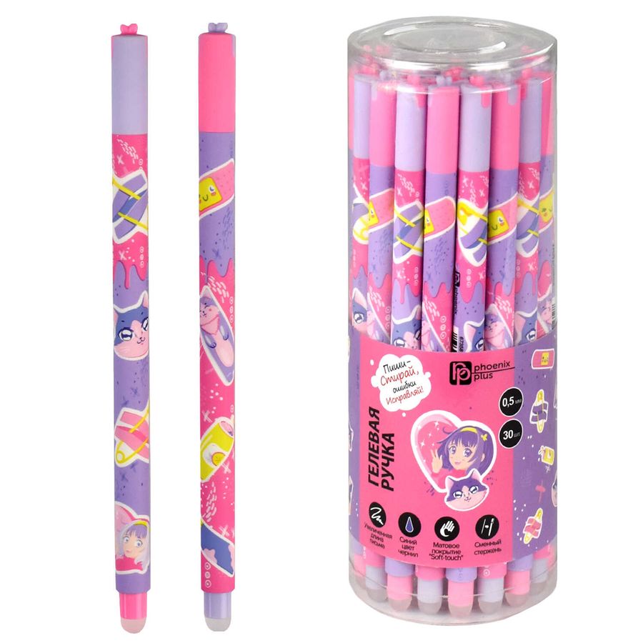 Ручка гелевая синяя 0,5мм стираемая Коты ассорти ФЕНИКС+ 67358